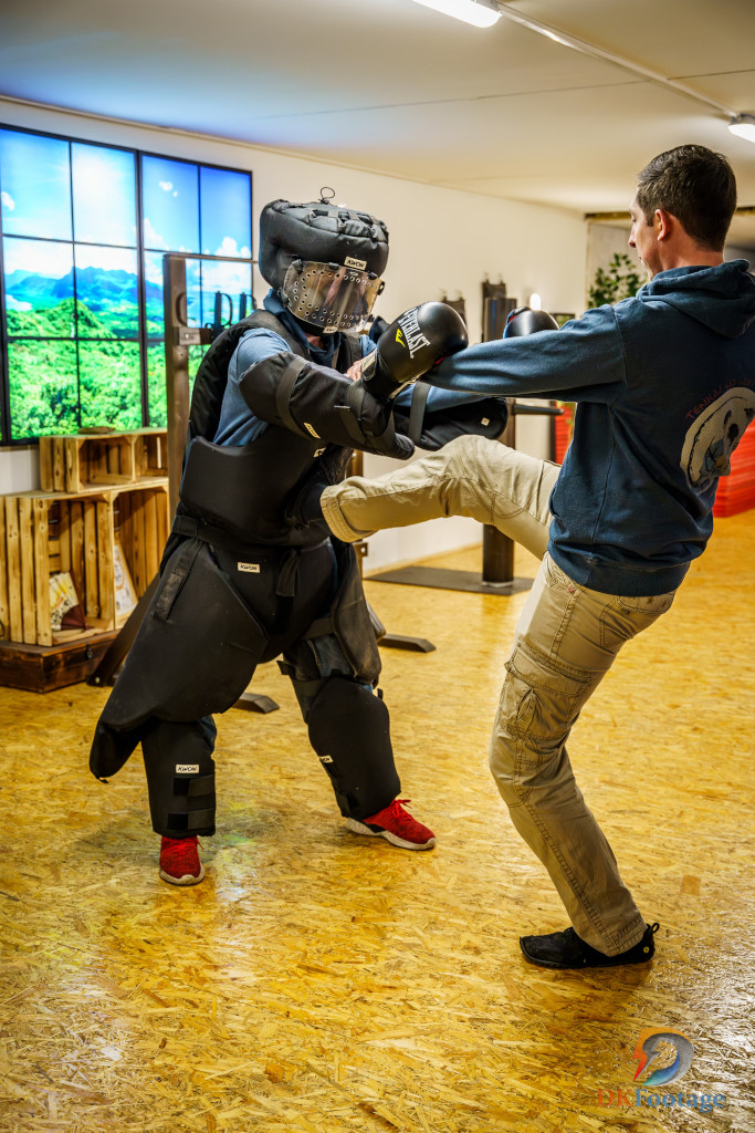 Ihr braucht selber zum Probetraining nichts mitzubringen außer normaler Sportkleidung, einem Pullover und Sportschuhen. Im Gegensatz zu anderen Kampfkünsten trainieren wir mit Schuhen und nicht barfuß.